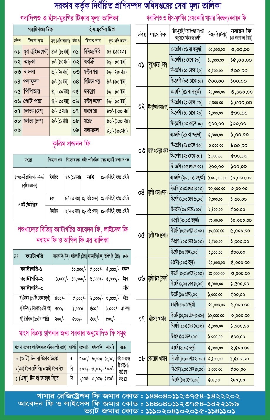 | ২ | অবকাঠামো রক্ষণাবেক্ষণ | নির্ধারিত অর্থ বছর | উপজেলা প্রাণিসম্পদ দপ্তরের রক্ষণাবেক্ষণ কাজের প্রক্কলণ ও চাহিদাপত্র | উপজেলা ও জেলা প্রাণিসম্পদ দপ্তর | বিনামূল্যে |